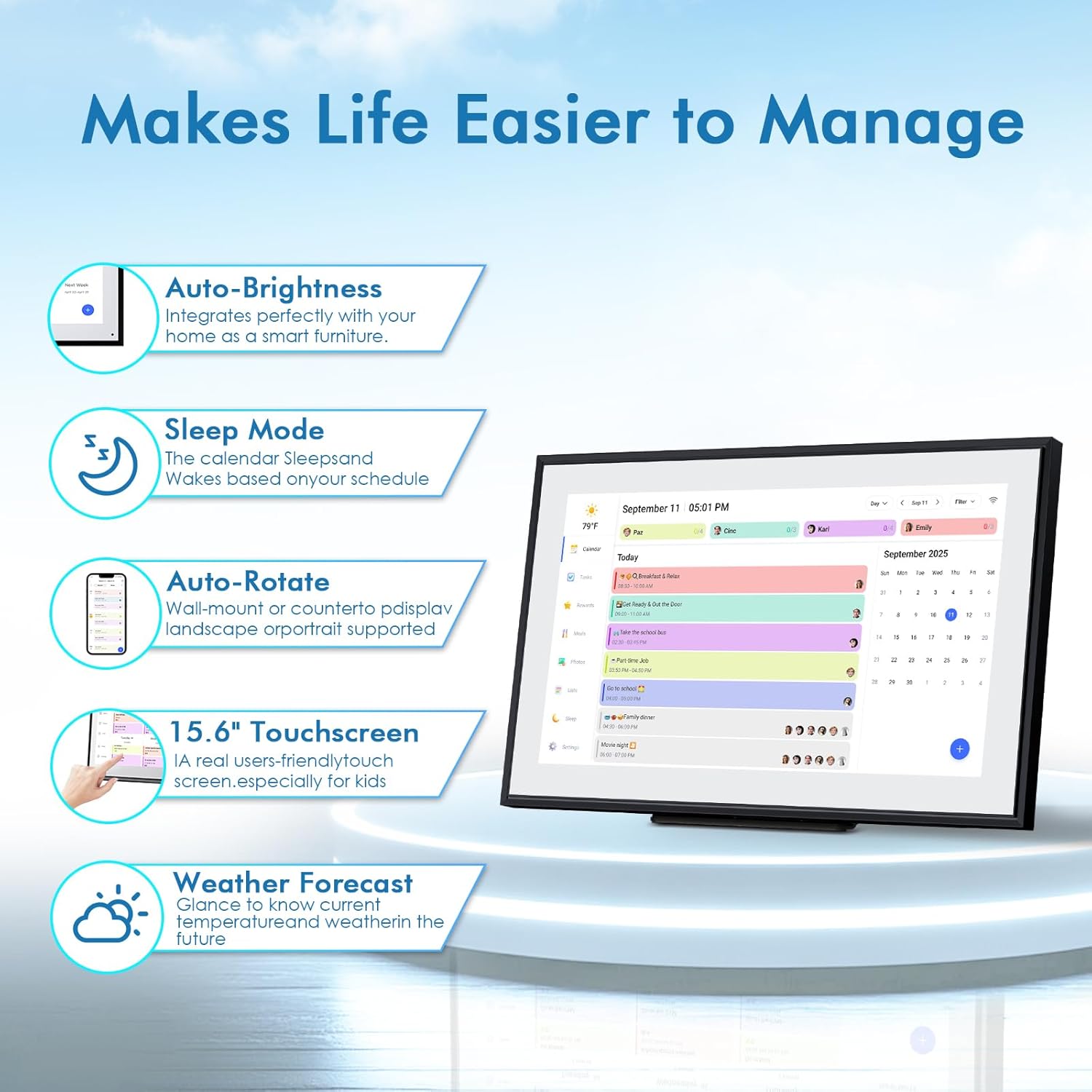 The Calendar Digital 15.6 Inch Electronic Calendar&Chore Chart boasts a 15.6-inch Full HD touchscreen display, providing an intuitive and user-friendly interface. With just a few clicks, you can effortlessly create and manage events, appointments, and reminders. The large screen size and high-resolution display make it easy to view and navigate your schedule, ensuring that you never miss an important deadline or appointment. Whether it’s a crucial meeting, a family gathering, or a personal event, this digital calendar has got you covered.